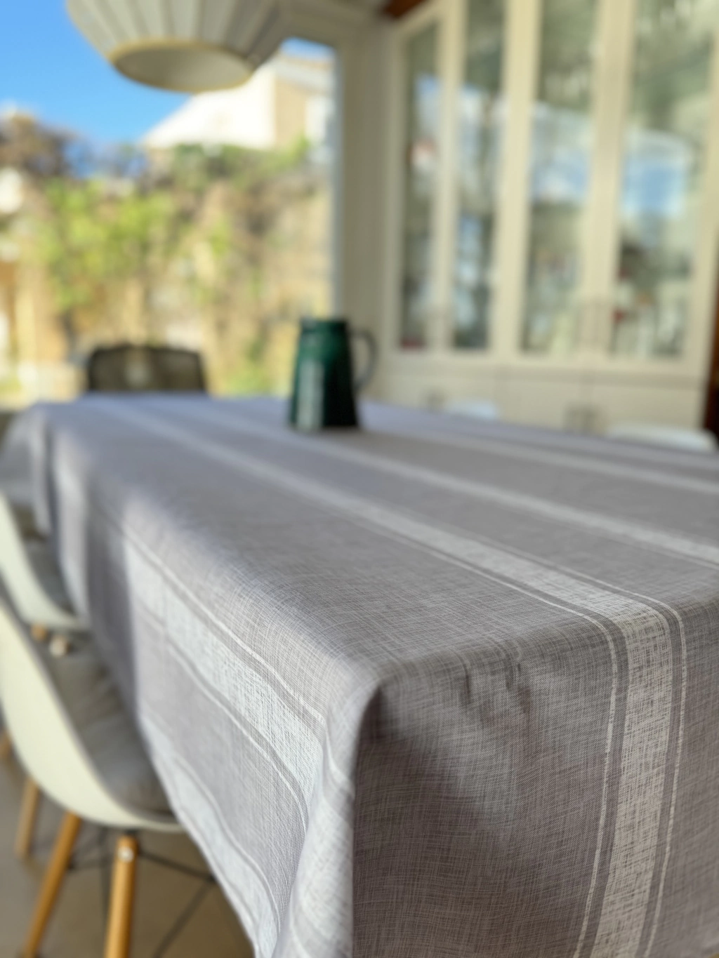 Nuestros manteles de tela anti derrame, poseen un tratamiento que repele los líquidos y ayuda a que las manchas no se asienten en la tela.