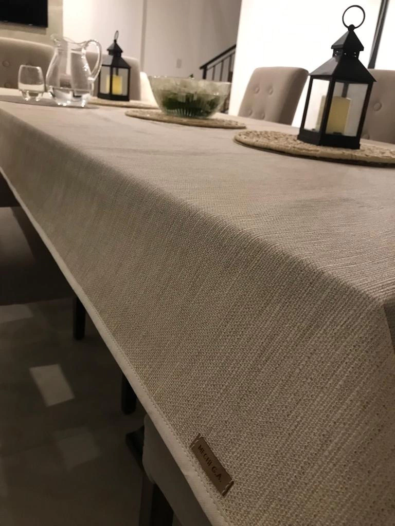 Todas las telas impermeables tienen 1,4 de ancho. Los manteles que superen esa medida llevan agregados en ambos laterales de la misma tela.